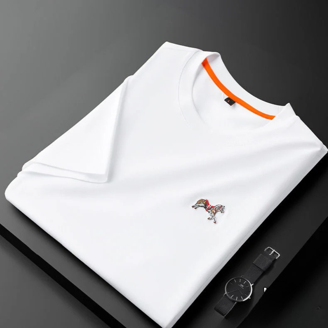 Minimalist Imported T-Shirt with Detailed Horse Embroidery and Relaxed Fit